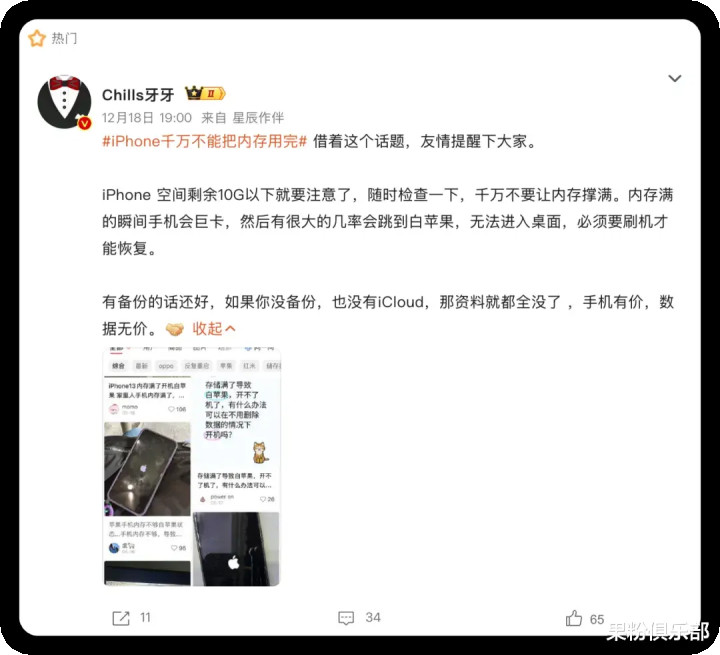 近期,一则名为「iPhone 千万不要把内存用完」的话题,悄悄冲上了微博热搜。