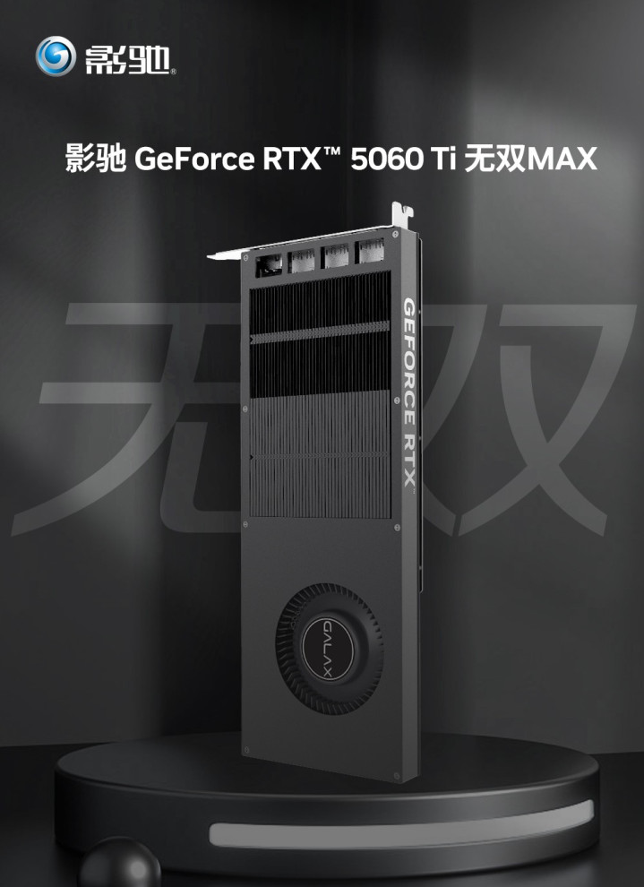 今年最具备特色的显卡,就当影驰GeForce RTX 5060 Ti无双MAX莫属了,作为市面上非常稀有的单卡槽,涡轮风扇的超薄显卡,无双系列在专业领域一直备受欢迎,极致的体积能兼容专业场景,并且拥有16GB大显存的RTX 5060 Ti 无双MAX,也是市面上为数不多的选择。